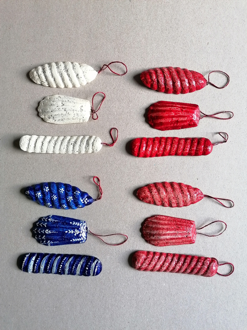 Im Sommer habe ich eine Handvoll alter Backförmchen entdeckt. Die fand ich mit ihren schlichten Formen und traditionellen Motiven so zeitlos und schön, dass diese jetzt eine neue Verwendung in der Entwicklung und Herstellung dieses Weihnachtsschmucks finden.